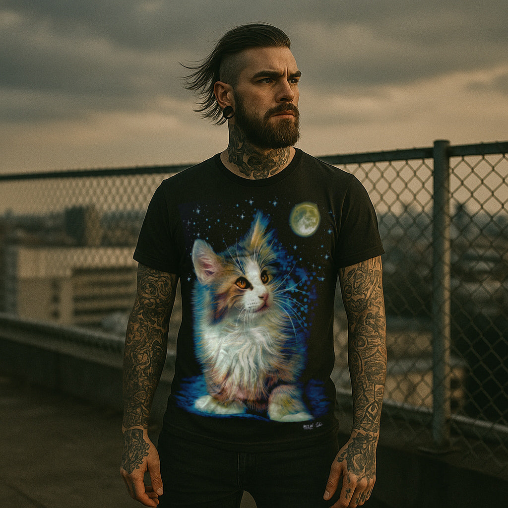 Ja – aber nicht billig fluoreszierend. Unser Glow-in-the-Dark-Print lädt sich im Tageslicht auf und entfaltet seine volle Wirkung in der Dunkelheit. Ein echtes Highlight – subtil bei Tag, spektakulär bei Nacht.